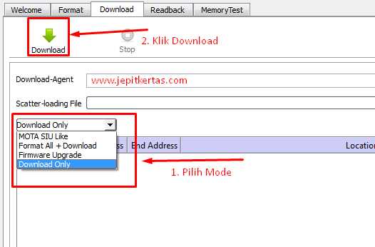 - Berbeda untuk flash tool v5, setelah memilih mode harus klik bagian “Download“.